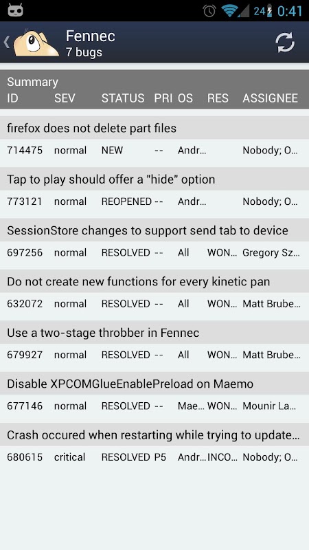 کے پرانے ورژن BugDroid - Bugzilla client
