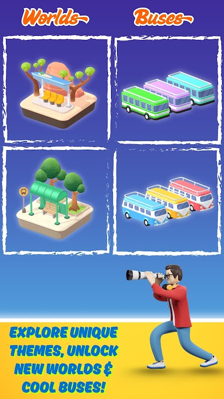 • رنگین گرافکس اور دلفریب ماحول - اپنے آپ کو متحرک، رنگین ماحول میں غرق کریں جو ہر سطح کو تازہ اور پرجوش محسوس کرتے ہیں۔ بسوں، مسافروں، اور پس منظر کو خوبصورتی سے ڈیزائن کیا گیا ہے تاکہ بصری طور پر دلکش تجربہ بنایا جا سکے۔