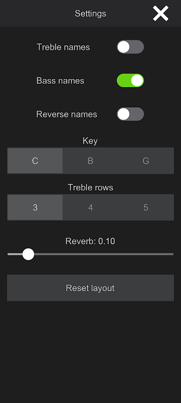 ایک حقیقت پسندانہ بٹن ایکارڈین ایپ۔