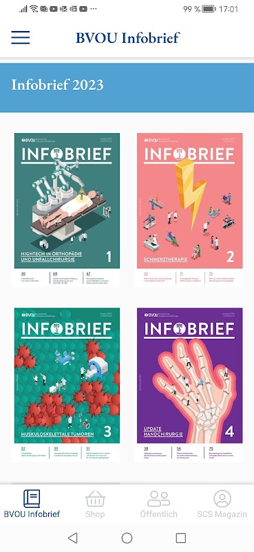 BVOU Reader ایپ کے ساتھ، پروفیشنل ایسوسی ایشن فار آرتھوپیڈکس اینڈ ٹراما سرجری (BVOU e.V.) کی متنوع اشاعتیں اسمارٹ فونز اور ٹیبلٹس پر ڈیجیٹل طور پر پڑھی جا سکتی ہیں۔