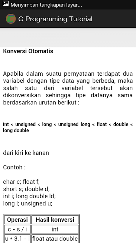 Aplikasi ini berisi berbagai tutorial menarik seputar pemrograman ANCI/C, Aplikasi ini dibuat semenarik mungkin agar pengguna menjadi tidak bosan dalam mempelajari tutorial yang disediakan.