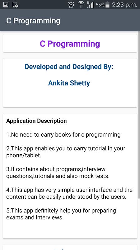It is a free C programming app and it is good for beginners to learn C programming language.