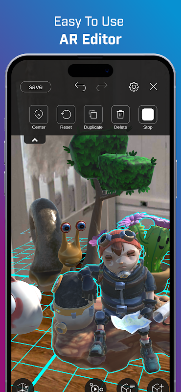 * اشاروں کا استعمال کرتے ہوئے سرگرمیوں کو بنانے اور ان میں ترمیم کرنے کے لیے ایک سادہ لیکن طاقتور AR ایڈیٹر۔