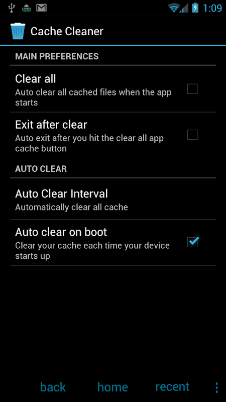 Clear all your cache and free up space with a single click! You can also setup an auto clear interval. Clearing your cache frees up internal storage and could improve the performance of your device.