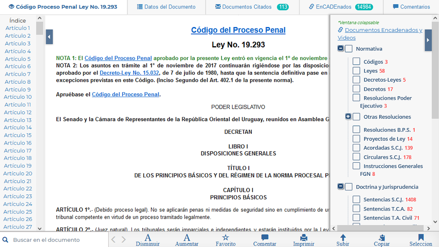 CADE APP ایک ایسی ایپلی کیشن ہے جو اپنے صارفین کو یوراگوئے میں سب سے مکمل ڈیٹا بیس تک رسائی فراہم کرتی ہے، قواعد و ضوابط، فقہی اصول، اصول اور دنیا سے متعلق مختلف معلومات: قانونی، نوٹری، ٹیکس/ٹیکس، لیبر قانون، صحت، سہولت وغیرہ