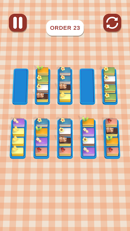 آرڈر ختم کرنے کے لیے کیک چھانٹ رہا ہے۔ کھیل کھیلنے میں آسان، لیکن آپ جتنے زیادہ درجات سے گزریں گے، ان سب کو ترتیب دینا اتنا ہی مشکل ہو جائے گا۔ اپنے دماغ اور انگلی سے آرڈرز مکمل کریں اور انہیں اپنے صارفین کو بھیجیں۔