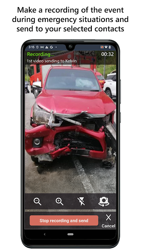 what's جو ہو رہا ہے اسے ریکارڈ کریں اور بھیجیں: ہنگامی صورتحال کے دوران واقعہ کی ریکارڈنگ بنائیں۔ آپ یا تو آڈیو یا ویڈیو کو ریکارڈ کرسکتے ہیں اور اس کا لنک ٹیکسٹ میسج یا ای میل کے ذریعے اپنے منتخب رابطے پر بھیج سکتے ہیں۔ یہ صورت حال کی شدت کے بارے میں اپنے رابطے کو آگاہ کرنے اور فوری مدد حاصل کرنے میں مددگار ہے۔ آپ بعد میں ان ریکارڈنگ کو واقعے کے ثبوت کے طور پر استعمال کرسکتے ہیں۔