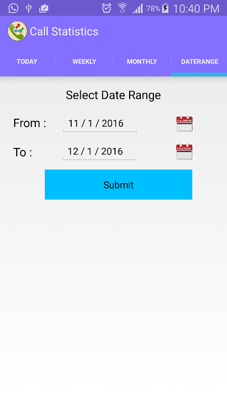 - Display call time of outgoing calls, incoming calls on daily, weekly and monthly basis.
