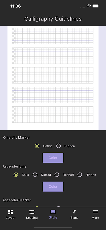کیلیگرافی گائیڈ لائنز ایپ کے ساتھ خطاطی کے حکمرانوں کے ہر پہلو کو حسب ضرورت بنائیں: