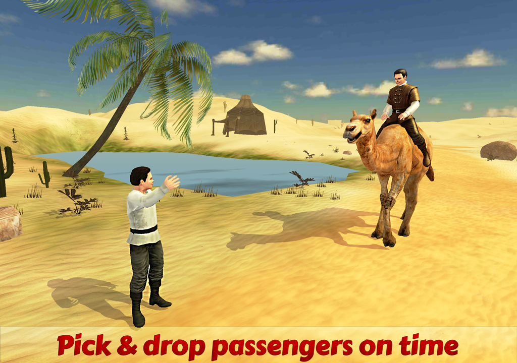 Enjoy realistic camel taxi sim in city offroad desert safari environment.