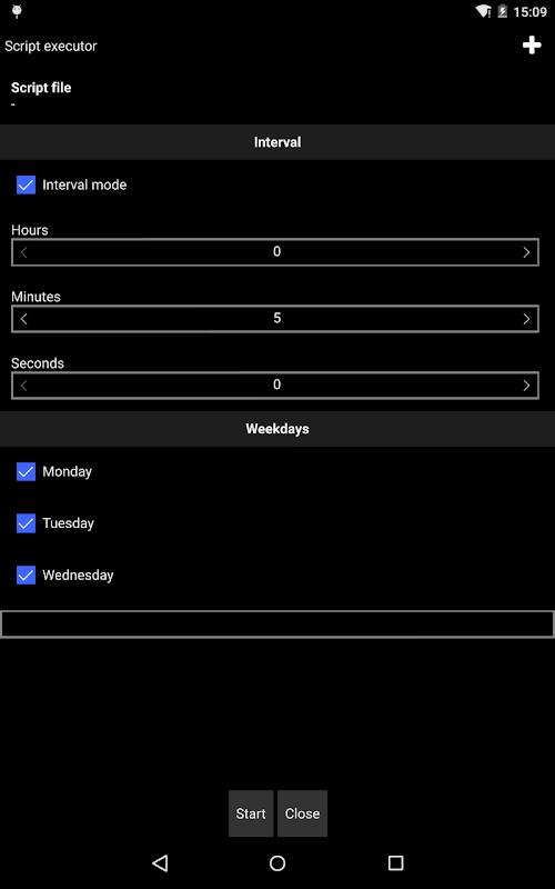 - Script executor: execute scripts at specific weekdays, intervals, time ranges, time-lapse, etc.