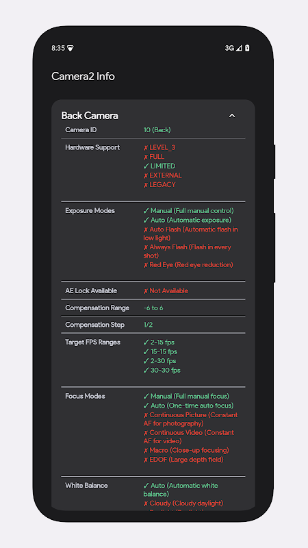Camera2 API سپورٹ کریں اور اپنے آلے پر کیمرہ ہارڈویئر کی تفصیلی معلومات دریافت کریں۔
