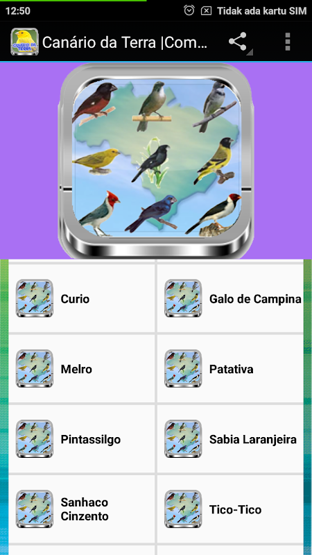 A utilização do aplicativo é simples, basta dar um clique para inciar a reprodução do canto e um clique longo para pará-la.