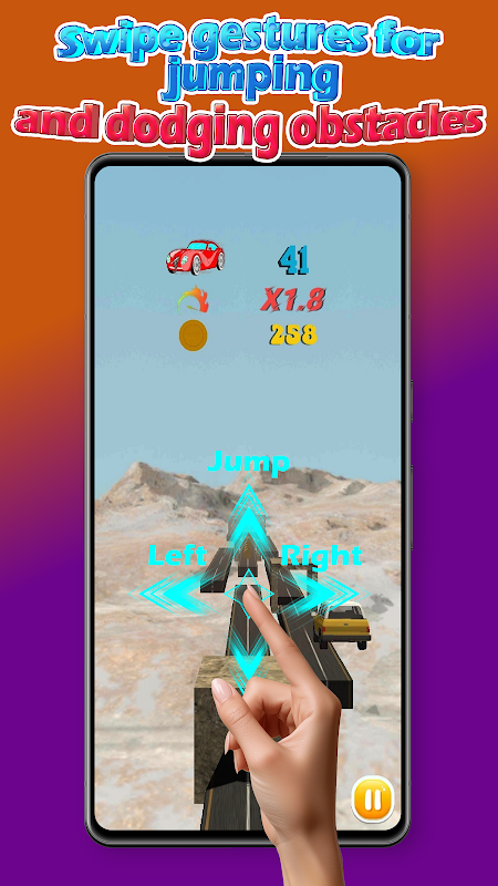 ڈاج کرنے کے لیے بائیں یا دائیں سوائپ کریں، کودنے کے لیے اوپر، اور رکاوٹوں کے نیچے سلائیڈ کرنے کے لیے نیچے۔ رفتار بڑھنے اور چیلنج بڑھنے کے ساتھ ہی ہر سیکنڈ کا شمار ہوتا ہے! نئی کاروں کو غیر مقفل کرنے اور اپنے ڈرائیونگ کے انداز کو دکھانے کے لیے راستے میں چمکدار سکے جمع کریں۔
