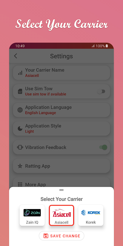 یہ ایپلی کیشن پری پیڈ کارڈوں کے لئے بیلنس بھرنے ، کیمرہ فون کے ذریعے کارڈ نمبر کو پڑھنے اور پھر صارف کو نتیجہ دینے کے عمل میں سہولت فراہم کرتی ہے اس کے بعد بیلنس کو پُر کرنے یا کارڈ نمبر کو آسانی سے شیئر کرنے کے لئے اس نمبر کا استعمال کرسکتی ہے۔