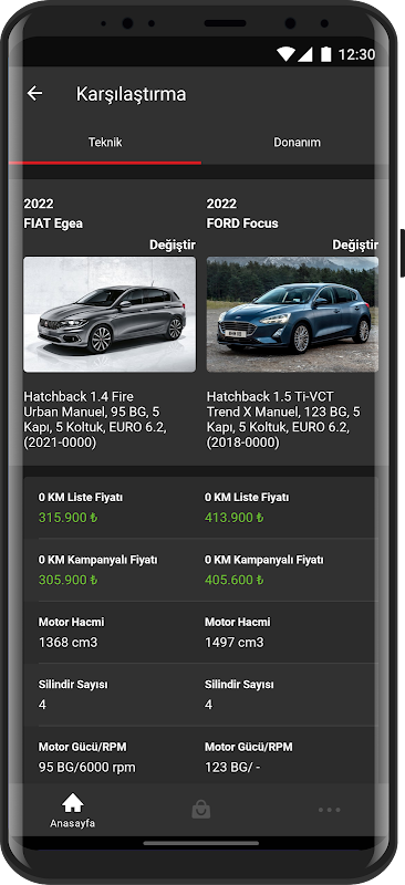 نئے ورژن میں، ترکی میں 0 KM اور سیکنڈ ہینڈ الیکٹرک اور ہائبرڈ دونوں گاڑیوں کی قیمتیں صرف اور صرف کارڈیٹا میں ہیں۔