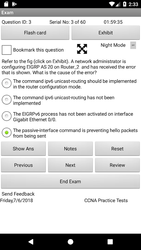 CCNA 200-125 exam sim provides 60 practices questions with detailed explanation.
