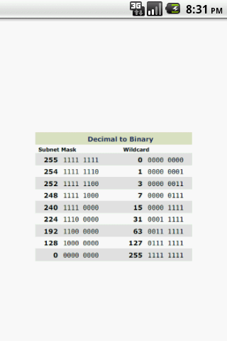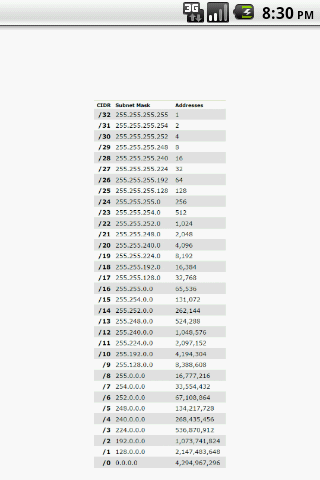 A zoomable reference table format for commonly needed info for subnetting.