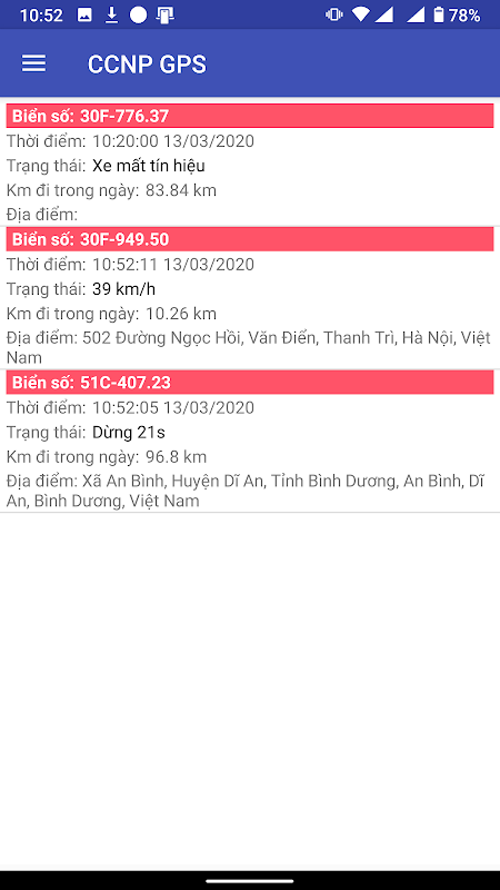 Ứng dụng giám sát hành trình xe CCNP GPS