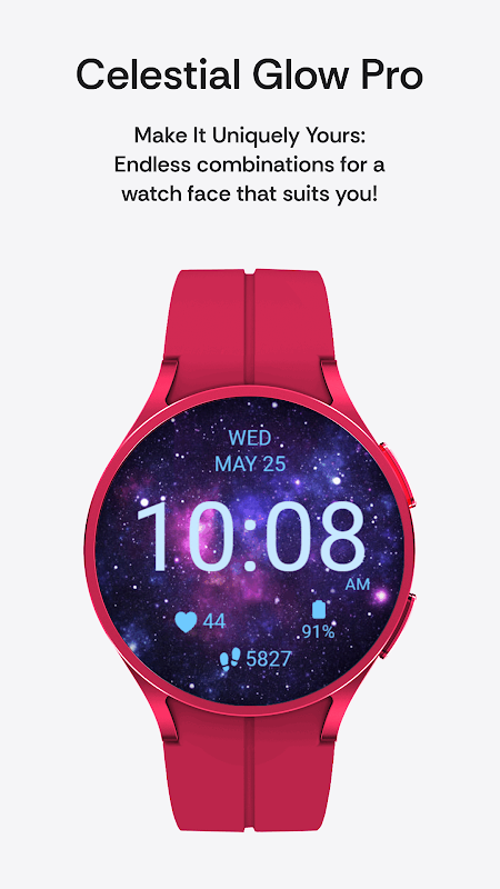 چاہے آپ خلاء کے شوقین ہوں، فٹنس ٹریکر استعمال کریں، یا بس اپنی کلائی کو نمایاں بنانا چاہتے ہوں، یہ حسبِ خواہش واچ فیس آپ کو ایک کائنات بھر کے اختیارات دیتا ہے۔