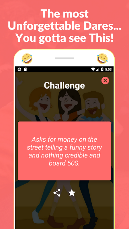 app اس ایپ کے ذریعہ آپ کو مزید تلاش نہیں کرنا پڑے گا ، یہاں آپ کو تفریح کے درجنوں چیلنجز اور سوالات (ہر بار جب ہم مزید شامل کریں گے) جب تک آپ چاہیں لطف اندوز ہوسکیں گے! ... آپ دوستوں کے ساتھ کام کرنے کے ل of چیلنجوں کا مقابلہ کبھی نہیں کریں گے!