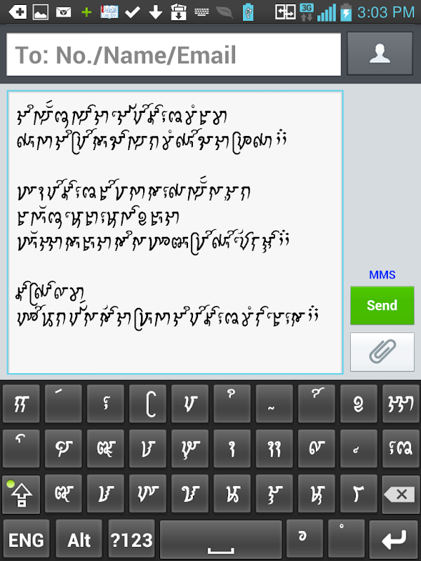 This keyboard was developed Under the USAID funded SPICE program to support every version of android smart phone. This means that typing in Cham language have never been a barrier for those who loved to use their local language to share and improve their conversations through communication channel. You could find all Cham glyphs on the keyboard which was prepared according to the common usage of the script. Although, you still need to install Cham font to display input text.
