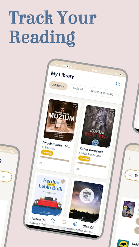 • اپنی لائبریری کا نظم کریں: آسانی سے وہ کتابیں شامل کریں جو آپ پڑھ رہے ہیں، پڑھنے کا ارادہ کر رہے ہیں، یا مکمل کر چکے ہیں۔ اپنے مجموعے کو اسٹیٹس کے لحاظ سے منظم کریں اور اپنی پڑھنے کی سرگزشت پر نظر رکھیں۔