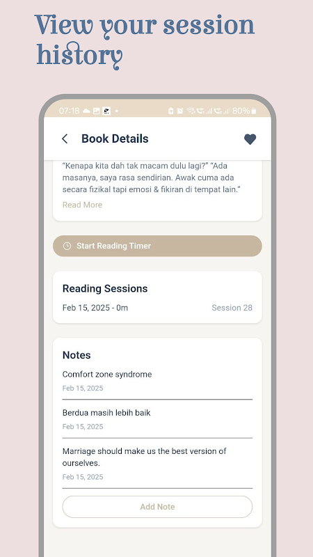 • نوٹس اور جائزے شامل کریں: اپنے خیالات، یادگار اقتباسات، یا تفصیلی جائزے پڑھتے ہی لکھیں۔ بصیرت کا اشتراک کریں اور بعد میں اپنے مظاہر پر نظرثانی کریں۔