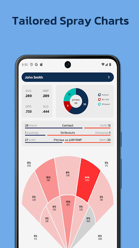 اپنی ٹیم کو چارٹ کریں پھر کسی بھی منظر نامے کے لیے موزوں ہیٹ/پِچ میپس یا سپرے چارٹس بنائیں جس میں پچ فلٹرز کے 1.9 ملین سے زیادہ مجموعے دستیاب ہوں۔ آپ بائیں ہاتھ سے مارنے والوں کو گھڑے کی 2-اسٹرائیک پچز دیکھنا چاہتے ہیں؟ کوئی مسئلہ نہیں۔ ایک بلے باز اضافی اڈوں کے لیے ان تمام پچوں کے بارے میں کیا خیال رکھتا ہے؟ آسان چارٹس کے تجزیات کے ساتھ، آپ کو صرف پچوں کو ٹریک کرنا ہے اور ایپ باقی کام کرے گی۔
