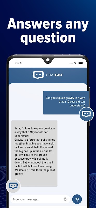 ہماری ایپ ایک منفرد زبان کے ماڈل، GPT-3.5 سے تقویت یافتہ ہے، اور اسے بغیر کسی رکاوٹ کے چیٹ کا تجربہ فراہم کرنے کے لیے ڈیزائن کیا گیا ہے۔