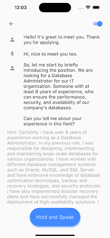 ہمارے جدید ترین، AI سے چلنے والے پریکٹس پلیٹ فارم کے ساتھ اپنی انگریزی انٹرویو کی مہارت کو بلند کریں۔ ہماری ایپ نہ صرف فوری تاثرات فراہم کرتی ہے بلکہ آپ کے جوابات کو بہتر بنانے، آپ کو حقیقی دنیا کے ملازمت کے انٹرویوز کے لیے تیار کرنے میں بھی آپ کی مدد کرتی ہے۔ ہمارے منفرد 'اشارہ فیچر' کے ساتھ نمایاں رہیں، جو کہ آپ مشق کرتے وقت موزوں ٹپس فراہم کرکے آپ کے سیکھنے کو بڑھانے کے لیے ڈیزائن کیا گیا ہے۔ ہمارے پلیٹ فارم کے ساتھ، اپنے اعتماد کو فروغ دیں، اپنی کمیونیکیشن کی مہارتوں کو بہتر بنائیں، اور اس ملازمت کے انٹرویو کو حاصل کرنے کے لیے تیار رہیں۔