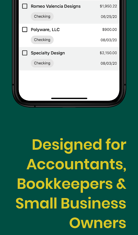 بہت سارے کاروباری مالکان ، منیجرز ، اور فنانس ٹیموں کے ساتھ جو دور سے یا میدان میں کام کررہے ہیں ، ہمارا محفوظ موبائل ایپ آپ کے کیش فلو کو سنبھالنے ، بیک آفس کی کارروائیوں کو چلانے ، اور بغیر کسی شکست کے اپنے بلوں کی ادائیگی کی اہلیت فراہم کرتی ہے۔ اپنے کاروباری بلوں کو براہ راست اپنے آلے سے جائزہ لیں ، منظور کریں ، دستخط کریں اور بھیجیں ، جبکہ اعداد و شمار اور معاون منسلکات کو فوری طور پر آپ کے چیکرون اور کوئیک بوکس آن لائن اکاؤنٹ کے مابین مطابقت پذیر بنایا جارہا ہے۔