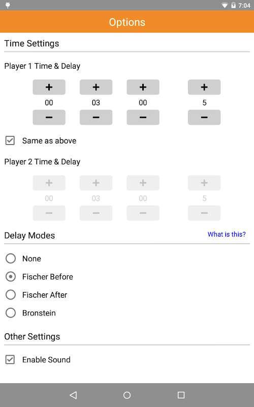 - Fischer Before/After: Delay is incremented to the player's timer before/after a turn. Times can increase indefinitely