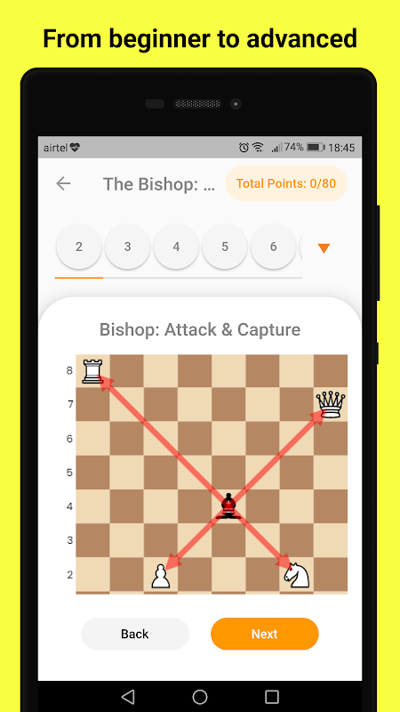 It's time to learn interactive chess courses with activity-based solving! Our courses have hundreds of activities from various learning levels. The different types of interactive activities help you digest the information easily. 1) Explanation Activity: This will teach you a concept in a concise way. 2) Capture Activity: The most fun and engaging way to learn piece movements and captures. 3) Puzzle Activity: Solve interesting puzzles and tactics from a given position. 4) MCQ Activity: Test your knowledge with quiz-based multiple-choice questions. 5) Play with Computer: Train your skills by practicing must-know positions with the computer.