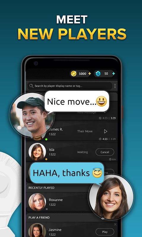 - چیٹ سیکشن میں دستیاب ایموجیز کے ساتھ اپنے حقیقی نفس کا اظہار کریں۔ اپنے مخالف کی ہر حرکت پر ردعمل ظاہر کریں اور اپنے دل کی بھڑاس نکالیں۔ دوستوں کے ساتھ شطرنج کا یہ کھیل زیادہ خوشگوار ہے۔