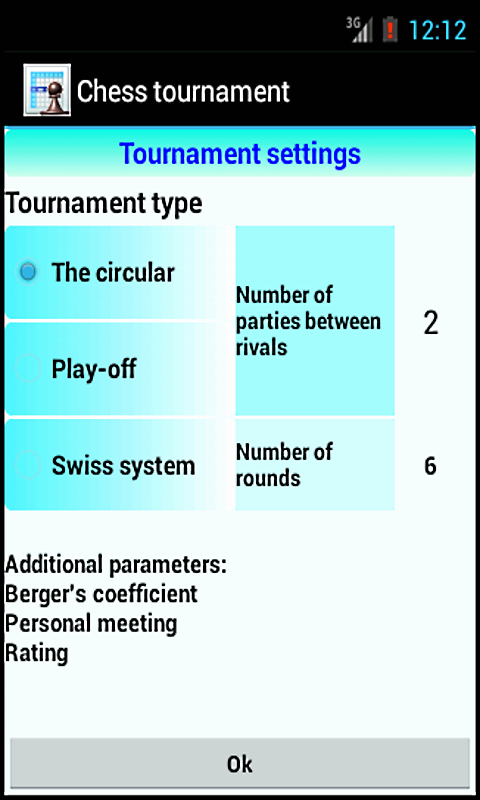 - سوئس سسٹم (برابر طاقت کے کھلاڑی موجود ہیں ، مثال کے طور پر ، 3 پوائنٹس والے وہ آپس میں کھیلتے ہیں ، 2 پوائنٹس آپس میں کھیلتے ہیں وغیرہ۔)