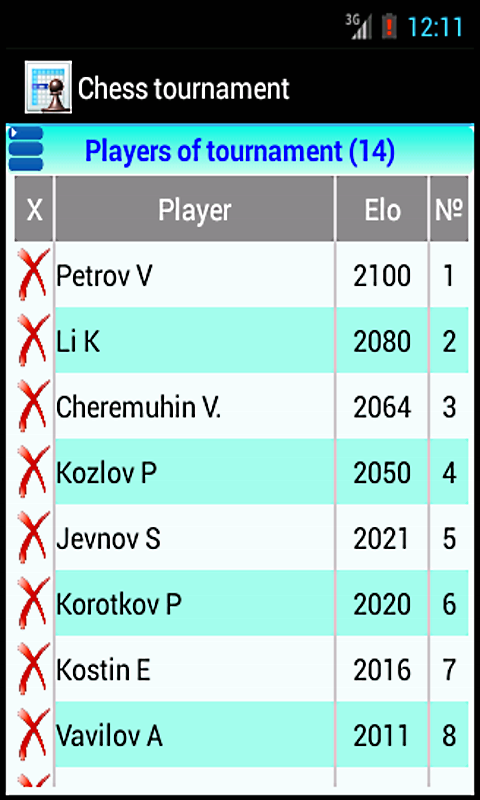 کھلاڑیوں کو ایک ڈیٹا بیس میں محفوظ کیا جاتا ہے جہاں سے ٹورنامنٹ کے شرکاء کو منتخب کیا جاتا ہے۔