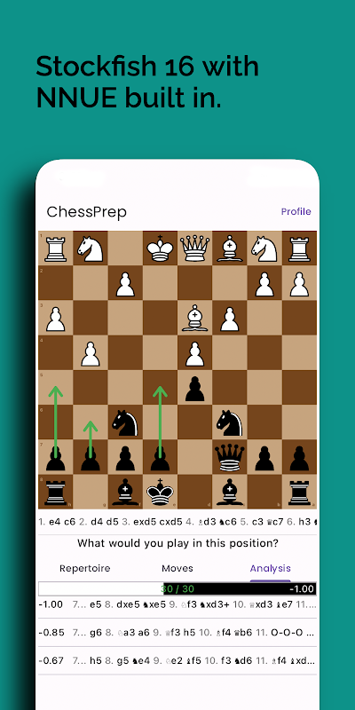 NNUE کے ساتھ اسٹاک فش 16: پوزیشنز کا تجزیہ کرنے، مختلف حالتوں کا حساب لگانے اور گیم کے بارے میں اپنی سمجھ کو بہتر بنانے کے لیے براہ راست ایپ کے اندر ایک طاقتور شطرنج انجن تک رسائی حاصل کریں۔