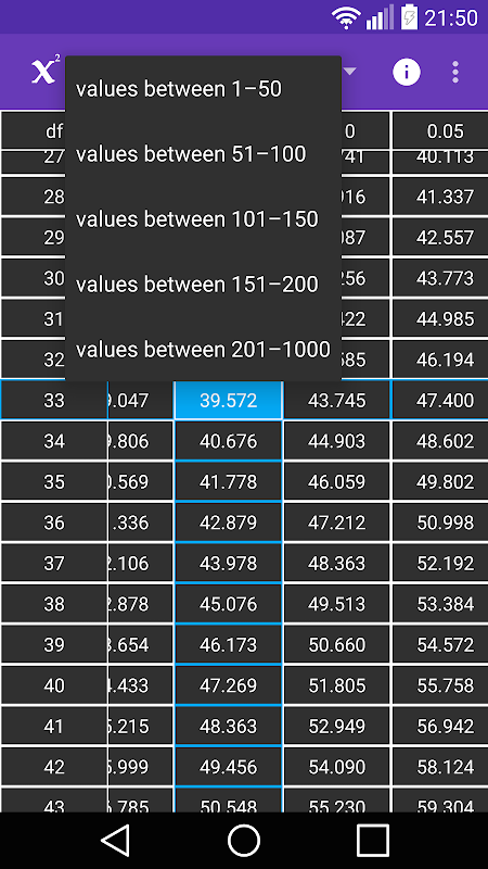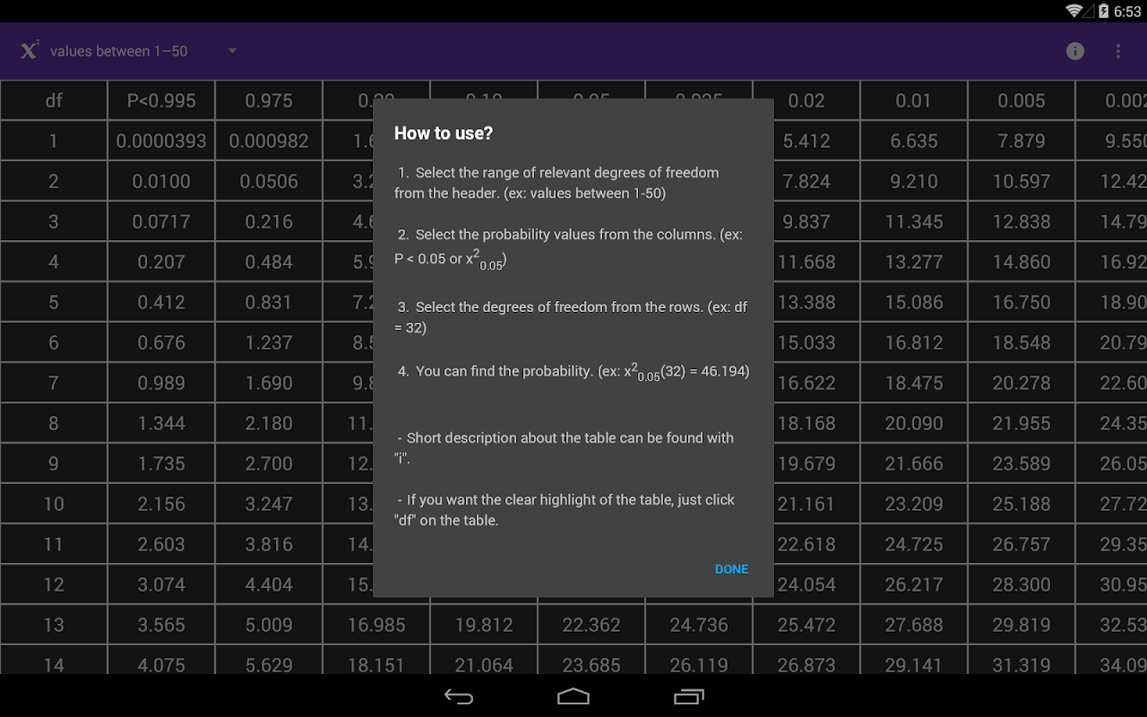 "چی اسکوائر ٹیبل" ایپلی کیشن صارفین کو آسان اور درست معلومات فراہم کرنے کے لئے تیار کی گئی ہے۔ آپ ایک ہی ایپ اور چی استعمال کرنے میں آسان میز پر تمام چی اسکوائر کی اہم اقدار تلاش کرسکتے ہیں۔