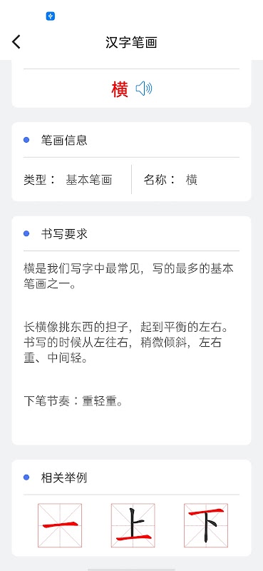 * 笔画名称语音播报:随动画实时播报笔画名称,还可自由调整播放速度,选择自动或手动播放模式。