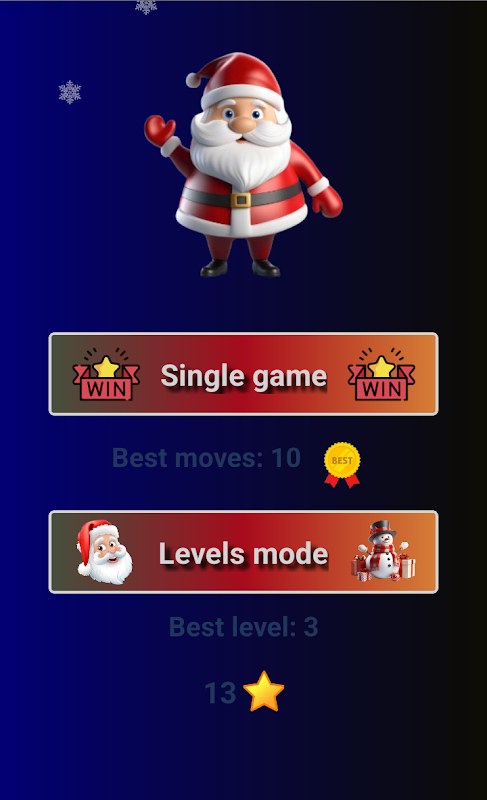 کرسمس تھیمڈ میموری گیم، سنگل گیم یا لیول گیم کا انتخاب کریں۔