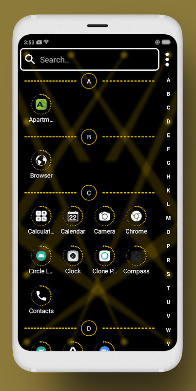 Circle Hi-tech Launcher provides text search of apps and also by alphabates index which gives fast access to apps.