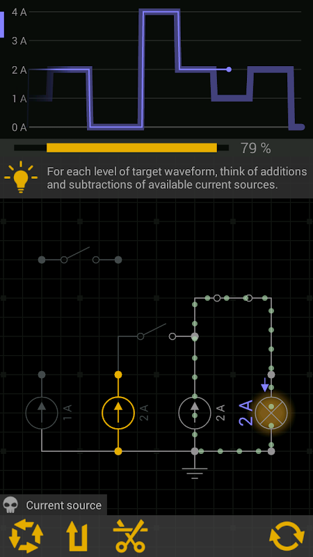 مقصد سرکٹس کی تعمیر کرنا ہے جو کسی شکل کے الیکٹرانک سگنل پیدا کرتے ہیں. آپ کو پہیلیاں حل کرنے کے لیے کنکشن بنانے، اجزاء کی قدریں سیٹ کرنے اور سوئچ چلانے کے لیے ملیں گے۔ سرکٹ جیم آپ کو یہ بھی سکھائے گا کہ وولٹیجز اور کرنٹ کو کیسے جوڑنا اور تقسیم کرنا، مساوی مزاحمت اور گنجائش نکالنا، اور اوہم کے قانون اور کرچوف کے قوانین کو استعمال کرنا۔ جیسے ہی آپ پہیلیاں مکمل کرتے ہیں، سینڈ باکس کے نئے اجزاء کھل جاتے ہیں۔