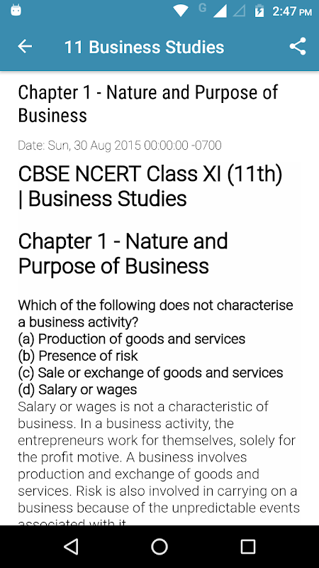 Class 11 Business Studies Note - app is specially designed for the NCERT class 11 students to help them prepare for their examinations. This app having NCERT syllabus Business Studies Class 11th solutions can be useful in two scenarios - To verify your answer after you solve the exercise problems and other one is Check the solution when you stuck.