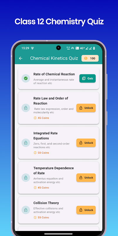 اس ایپ میں سی بی ایس ای کلاس 12 کیمسٹری این سی ای آر ٹی کتاب میں شامل تمام ابواب کے ایم سی کیو پر مشتمل ہے۔