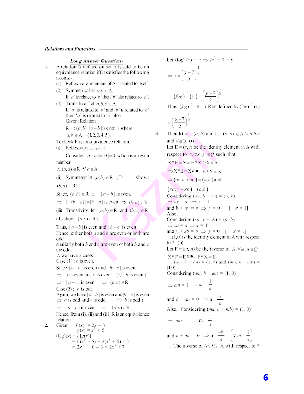 کلاس 12 ریاضی مثالی حل کے مشمولات