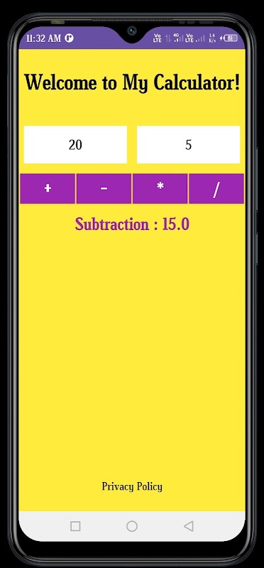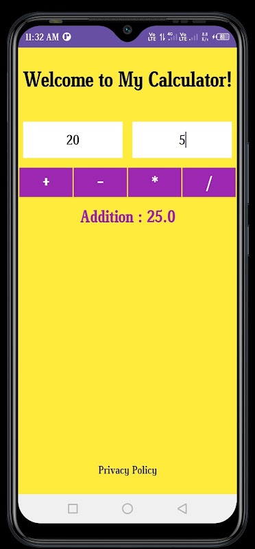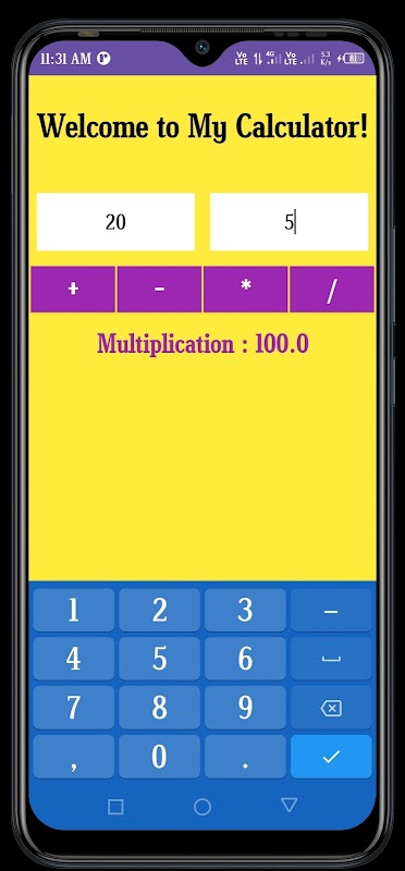 مائی کیلکولیٹر ایک ایسی ایپ ہے جہاں آپ کیلکولیٹر کی طرح دو نمبروں کو شامل، گھٹا، ضرب اور تقسیم کر سکتے ہیں۔