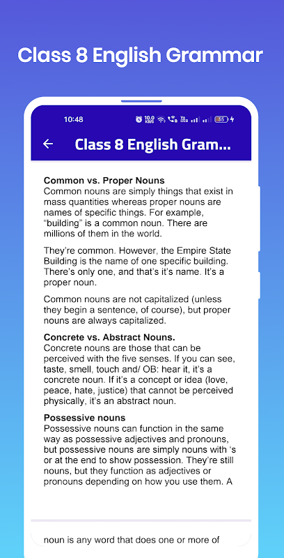 اس ایپ میں امتحان کے لیے کلاس 8 کے انگریزی گرامر کی کتابوں کے نوٹس میں شامل تمام ابواب کا حل موجود ہے۔