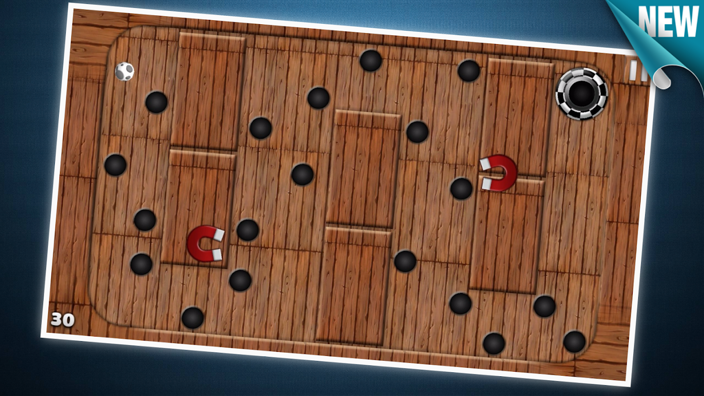 Два типа управления, катай шарик игровым манипулятором или наклоном телефона. Выбирай наиболее удобное для себя управление. У игрока всегда есть шанс сократить путь, если он сможет идеально проехать между дырками.