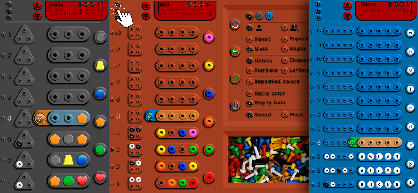 ● Mini4: 4 color secret code.